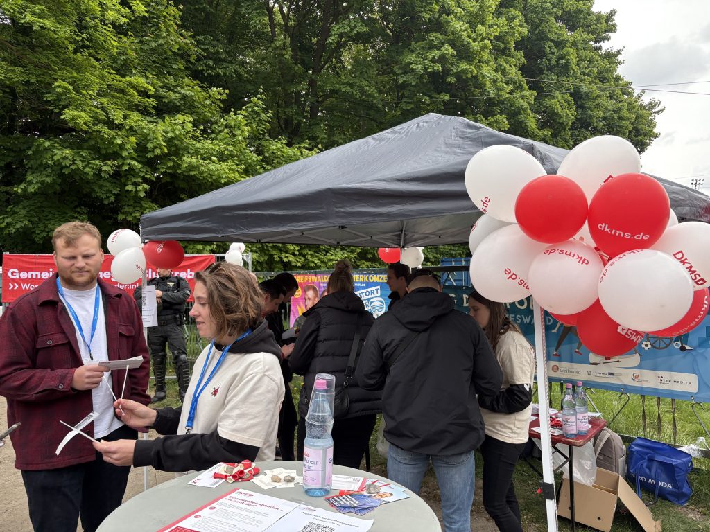 The matchday was not only a sporting success for Greifswalder FC and the Campus Heroes, but also a strong sign of solidarity. As part of a joint donor registration drive, former team captain Tom Weilandt was supported, as he is currently searching for a suitable stem cell donor.